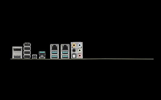 USB接口也很豐富,包括Z390芯片組支持的六個原生USB 3.1 Gen.2(背部)、六個USB 2.0(背部)、兩個USB 2.0(插針),祥碩主控的兩個USB 3.1 Gen.2(背部其一為Type-C)、兩個USB 3.1 Gen.1(背部),還帶有雷電接口插針。
