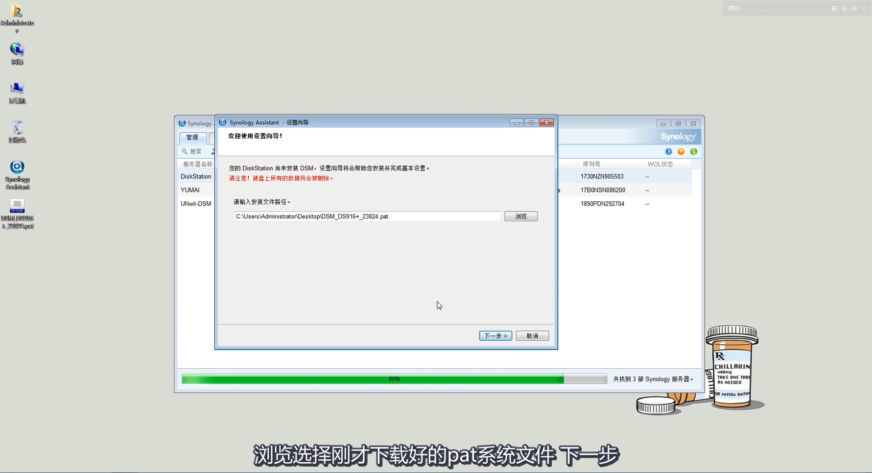 選擇你的機(jī)器的型號(hào),然后下載 pat 文件和安裝助手Synology Assistant